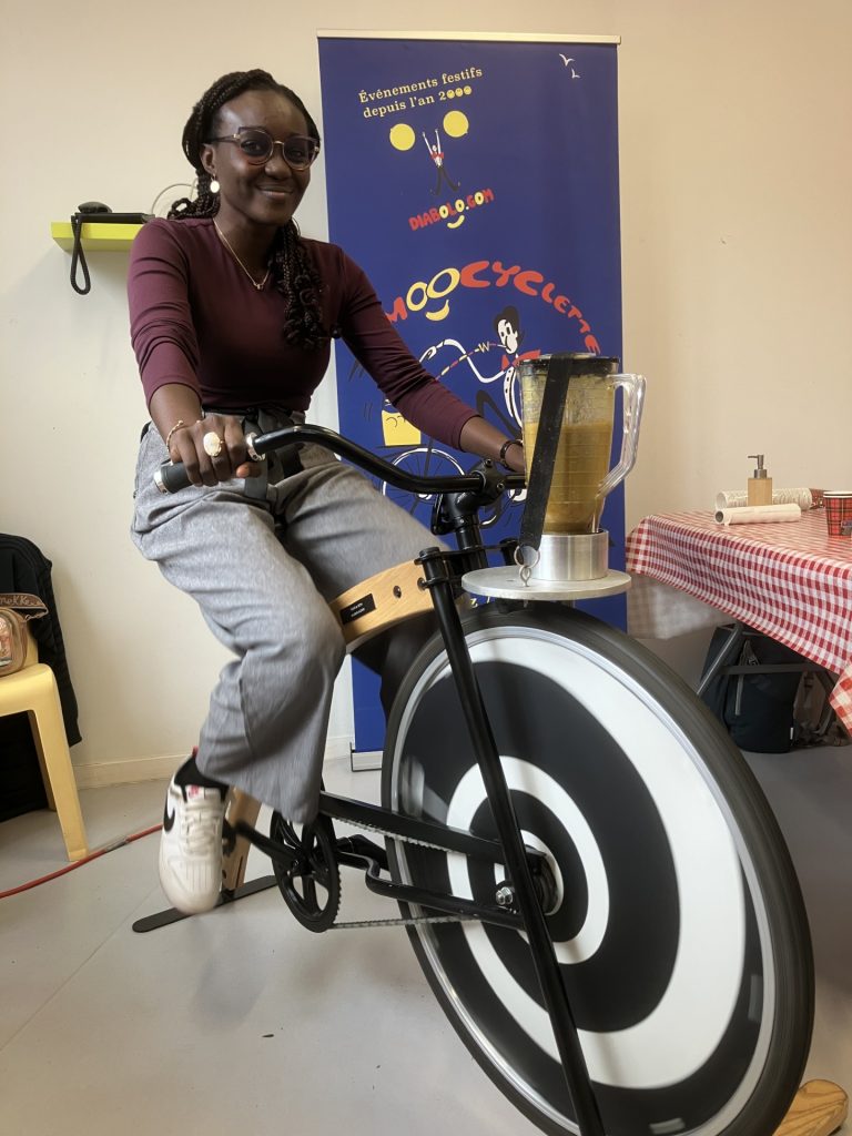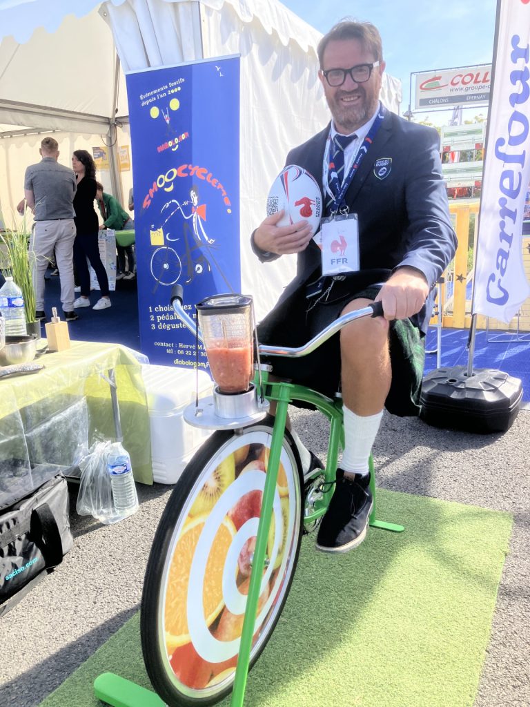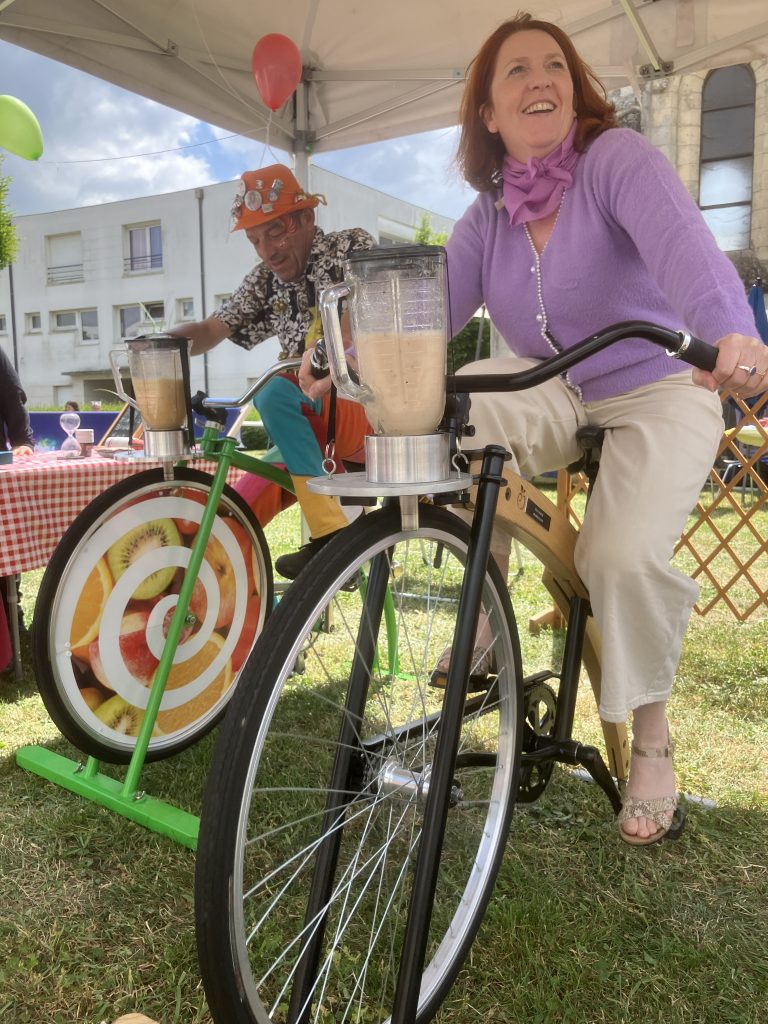 PEDALEZ, MIXEZ, DEGUSTEZ !!! 30 secondes de pédalage pour mixer vos fruits préférés : une animation sportive et écolo. Notre vélo Smoothie (ou Smoocyclette) est également générateur de lien, il crée une ambiance propice à la convivialité et aux échanges.